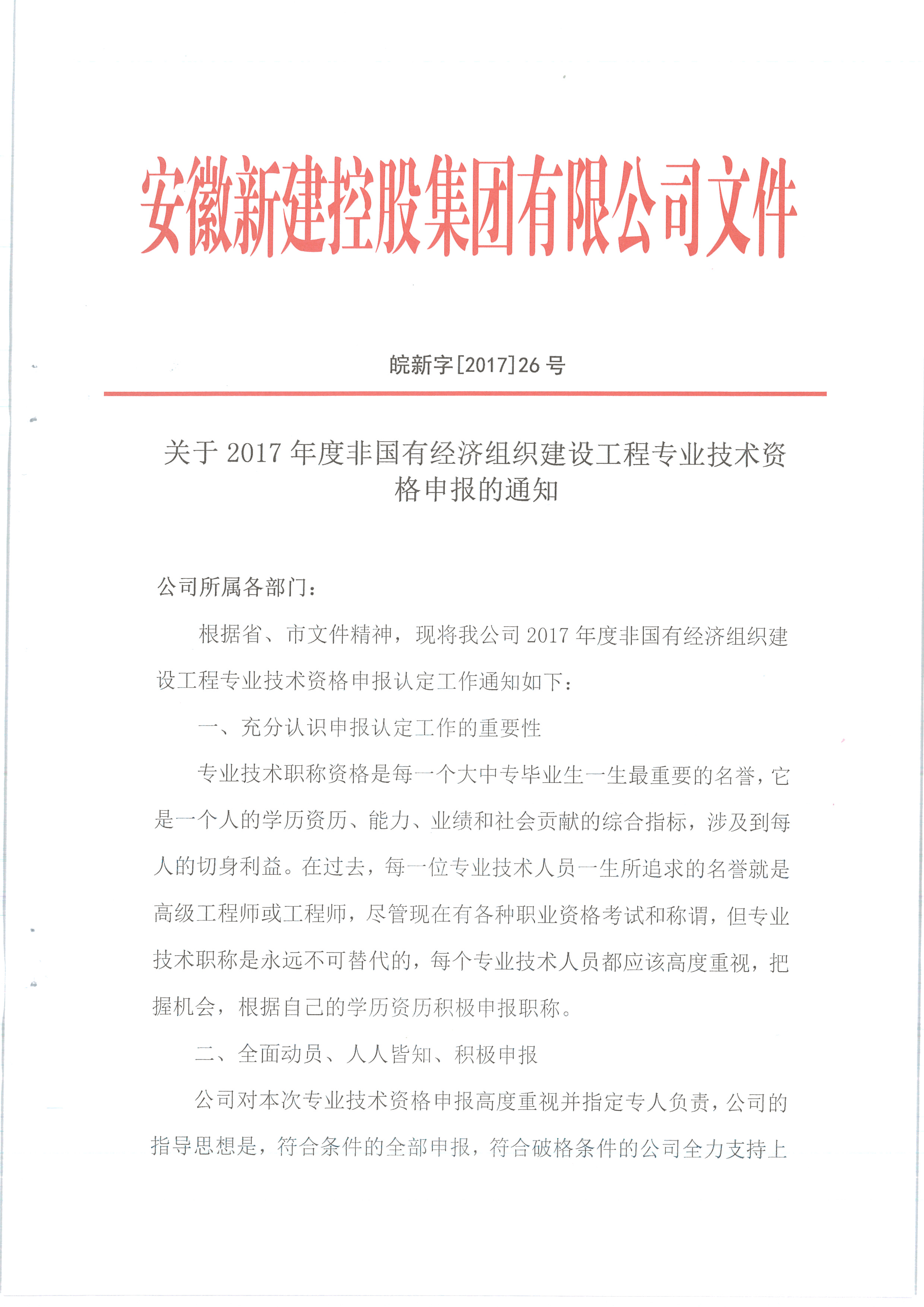 關(guān)于2017年度非國有經(jīng)濟組織建設(shè)工程專業(yè)技術(shù)資格申報的通知