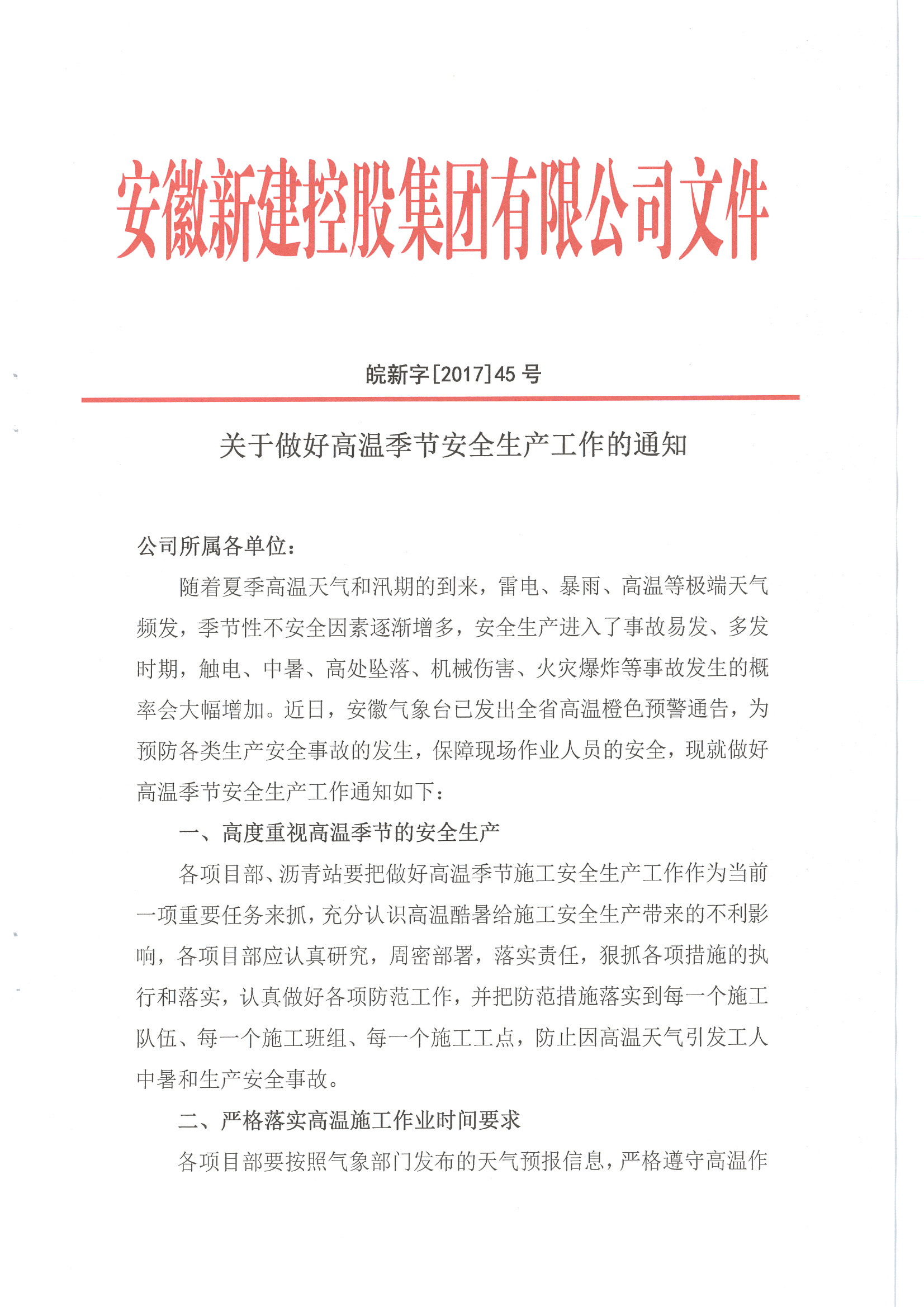 關(guān)于做好高溫季節(jié)安全生產(chǎn)工作的通知