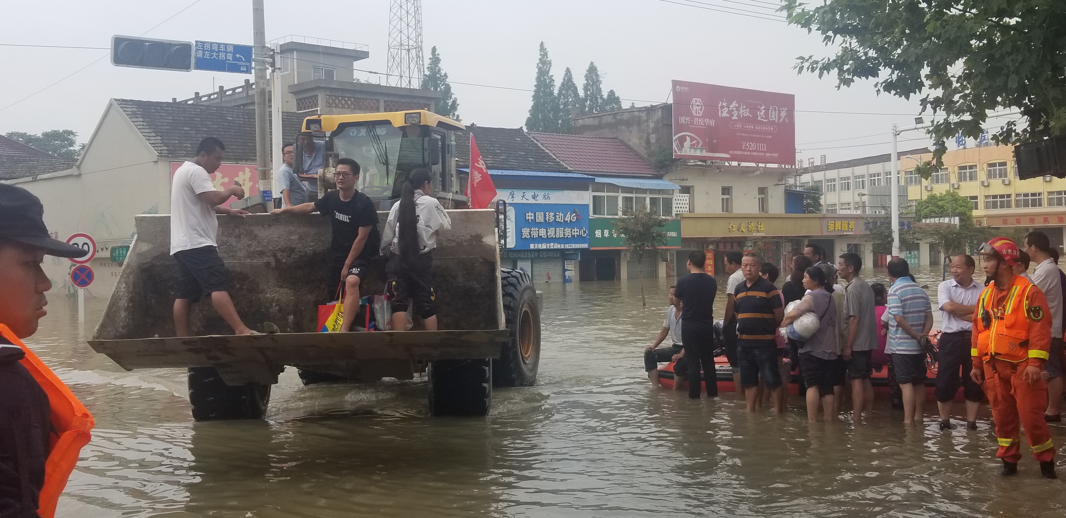 7月21日中午2:10分,突擊隊(duì)再次接到縣防汛指揮部命令,古河鎮(zhèn)滁河大堤漫堤汛情嚴(yán)重,要求突擊隊(duì)立即組織設(shè)備前往支援。突擊隊(duì)馬上安排平板車先行運(yùn)送4臺(tái)裝載機(jī),11名突擊隊(duì)員隨車出發(fā),于中午2:45分到達(dá)目的地,隨即與地方政府取得聯(lián)系,配合消防戰(zhàn)士、解放軍官兵及抗洪干部群眾運(yùn)送沙袋、物資。由于該處汛情較為嚴(yán)重,截止到發(fā)稿之時(shí),該處的抗洪救災(zāi)工作還在繼續(xù)當(dāng)中。