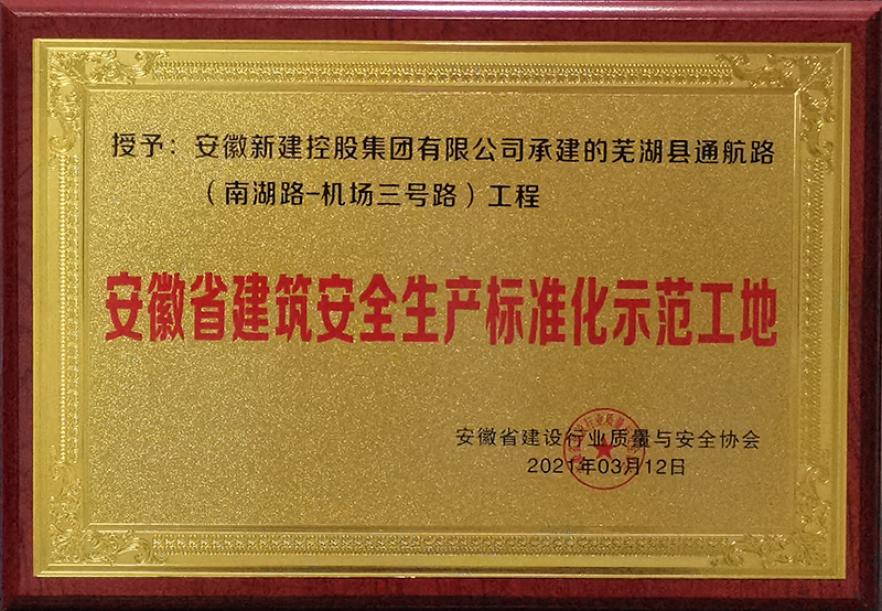 日前,安徽省建設(shè)行業(yè)安全協(xié)會公告2020年度第四批安徽省建筑安全生產(chǎn)標(biāo)準(zhǔn)化工地名單,由集團(tuán)公司承建的蕪湖縣通航(南湖路-機場三號路)工程榮獲”安徽省建筑安全生產(chǎn)標(biāo)準(zhǔn)化示范工地”稱號。