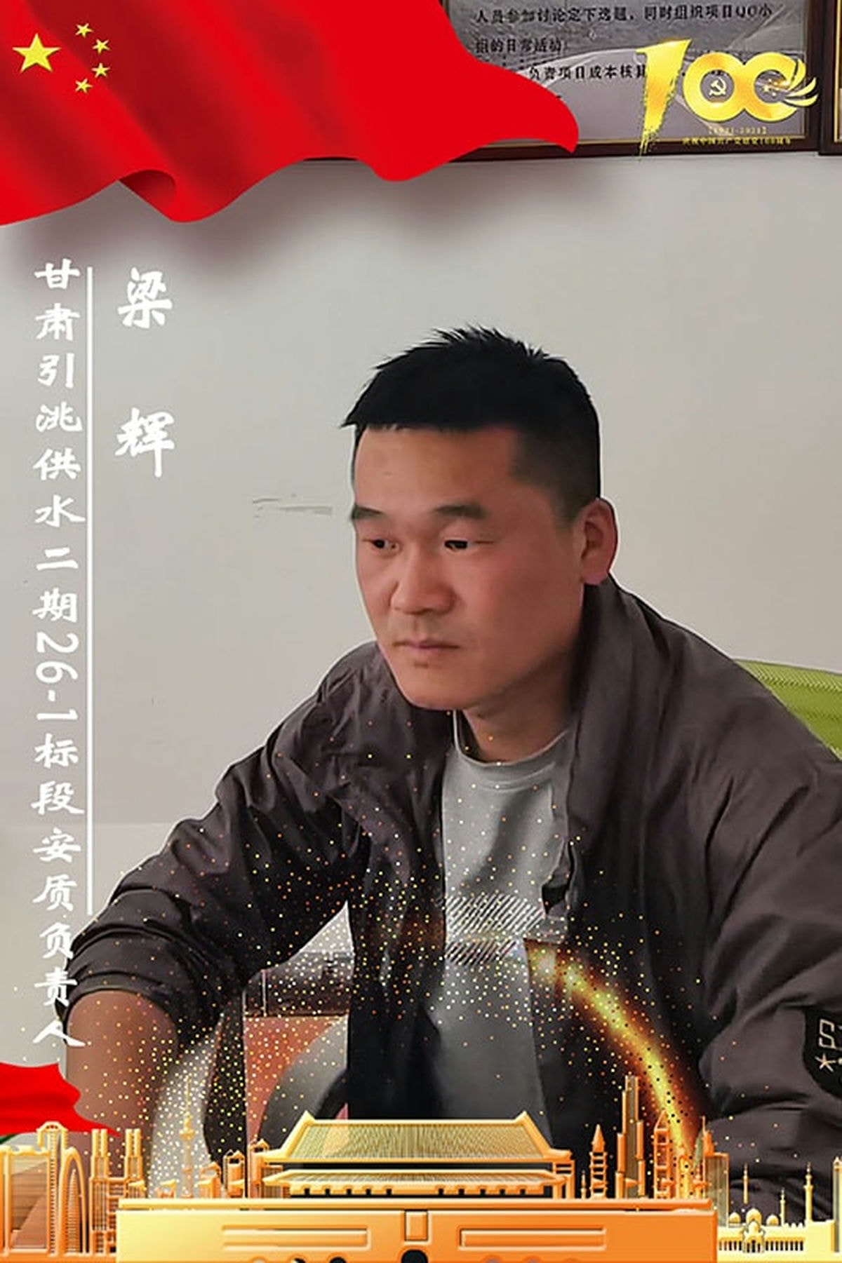 梁輝政治思想過硬,愛崗敬業(yè)、嚴于律己,具有強烈的事業(yè)心和責任心,同時敢于負責、勇于擔當、善于作為。2019年6月,在得知公司中標的甘肅省引洮供水二期工程,作為二次招標進場施工標段任務(wù)重、工期緊、難度大的情況下,梁輝主動要求到施工第一線去負責安全生產(chǎn)和質(zhì)量管理工作。