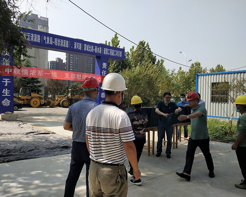 9月18日,在中秋、國(guó)慶雙節(jié)來(lái)臨之際,廬陽(yáng)區(qū)重點(diǎn)工程管理中心何平副主任、市政建設(shè)科科長(zhǎng)李繼明,在項(xiàng)目臨時(shí)黨支部書記陪同下組成慰問組,來(lái)到公司承建的廬陽(yáng)區(qū)清源路(氣象局-現(xiàn)狀清源路)開展“中秋情濃系一線,支部慰問暖人心”活動(dòng)。