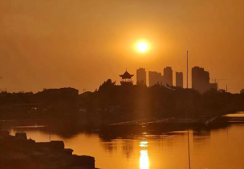 夕陽西下,余暉染黃了水面