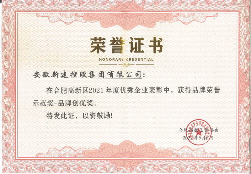 為推動(dòng)高新區(qū)經(jīng)濟(jì)持續(xù)穩(wěn)定發(fā)展,進(jìn)一步發(fā)揮企業(yè)示范效應(yīng),發(fā)揮獎(jiǎng)勵(lì)資金引導(dǎo)作用,6月10日,合肥高新區(qū)召開(kāi)2022年企業(yè)表彰大會(huì),安徽新建控股集團(tuán)在此次表彰中,榮獲品牌榮譽(yù)示范獎(jiǎng)——品牌創(chuàng)優(yōu)獎(jiǎng)。