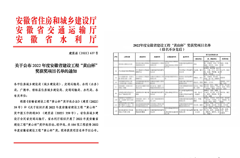“黃山杯”獎(jiǎng)為安徽省建設(shè)工程質(zhì)量的最高獎(jiǎng),由省住房城鄉(xiāng)建設(shè)廳、省交通運(yùn)輸廳、省水利廳聯(lián)合頒發(fā),每年評(píng)選一次,在提高全省工程質(zhì)量水平上發(fā)揮示范引領(lǐng)作用。公司在承建項(xiàng)目之初,就將“精品工程”作為工程目標(biāo)進(jìn)行實(shí)施,并積極創(chuàng)優(yōu),從策劃、實(shí)施、總結(jié)提煉全過(guò)程進(jìn)行控制,并提出了按質(zhì)按量完成各項(xiàng)施工任務(wù)。施工過(guò)程中,項(xiàng)目部按照制定的施工組織方案,對(duì)各項(xiàng)工序嚴(yán)格把關(guān),各項(xiàng)技術(shù)指標(biāo)進(jìn)行嚴(yán)格控制,保證了施工質(zhì)量。