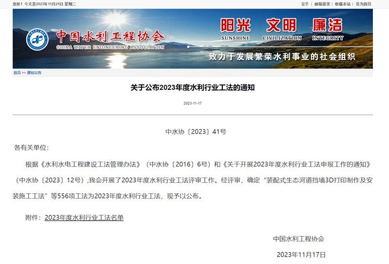 11月17日,中國(guó)水利工程協(xié)會(huì)發(fā)布了2023年度水利行業(yè)工法評(píng)審結(jié)果。經(jīng)評(píng)審,集團(tuán)公司申報(bào)的《大直徑壓力鋼管智能機(jī)械制作及安裝施工工法》,被評(píng)為2023年度水利行業(yè)工法。