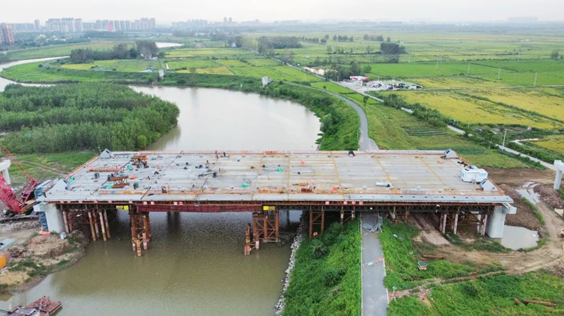 該項(xiàng)目建設(shè)工期緊、任務(wù)重、施工環(huán)境復(fù)雜、技術(shù)要求標(biāo)準(zhǔn)高,同時(shí)面臨洪水、高溫酷暑的考驗(yàn)。自該橋主橋鋼梁2024年3月開(kāi)始施工以來(lái),項(xiàng)目團(tuán)隊(duì)通力合作、精心策劃、科學(xué)組織、嚴(yán)密部署,為保障32米通航孔跨度要求,采用履帶吊在一側(cè)散拼吊裝焊接完成后進(jìn)行整體滑移,并嚴(yán)格按照施工計(jì)劃和技術(shù)規(guī)范執(zhí)行,仔細(xì)推敲和反復(fù)驗(yàn)證每一個(gè)環(huán)節(jié),克服種種困難,確保橋面系鋼梁順利合龍。
