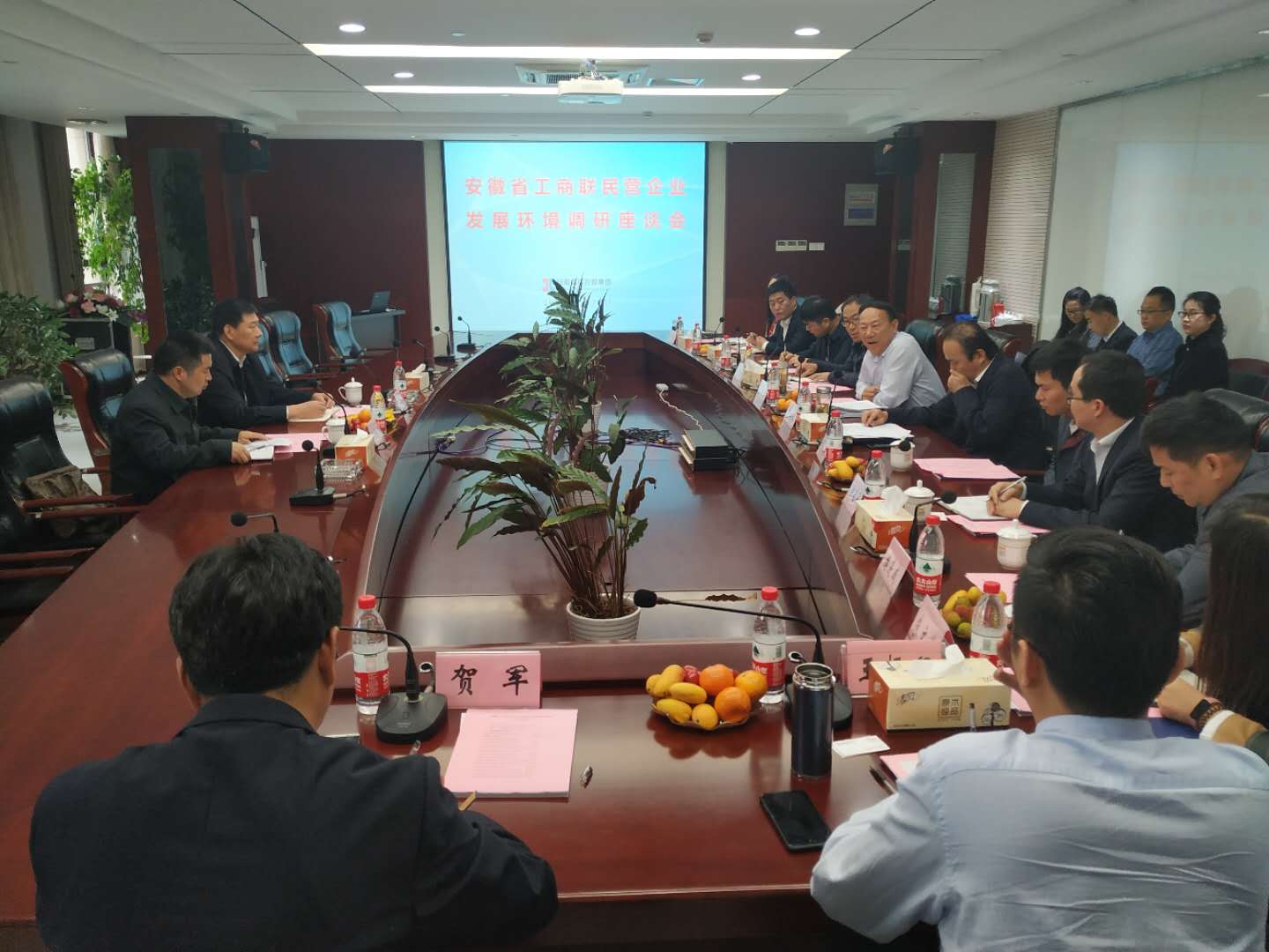 2019年4月28日下午,安徽省工商聯(lián)在我公司舉辦了“安徽省工商聯(lián)民營(yíng)企業(yè)發(fā)展環(huán)境調(diào)研座談會(huì)”。出席會(huì)議的有安徽省工商聯(lián)黨組成員、副主席施廣勇、安徽省工商聯(lián)政研室主任李增流,以及安徽省城市基礎(chǔ)設(shè)施投資商會(huì)執(zhí)行秘書長(zhǎng)陳志武等各位企業(yè)家代表。