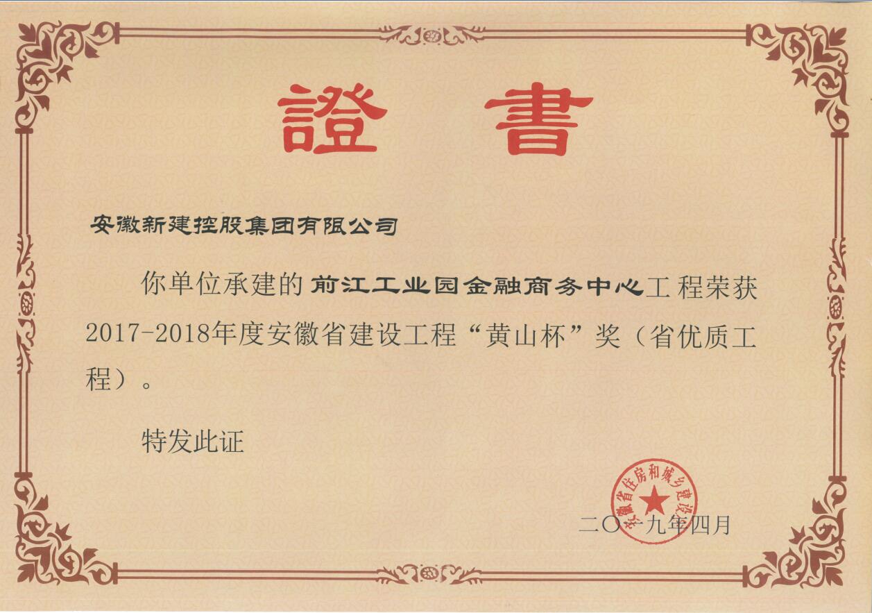 日前,由我公司承建的池州市前江工業(yè)園金融商務(wù)中心項(xiàng)目喜獲2017-2018年度安徽省優(yōu)質(zhì)工程“黃山杯”!