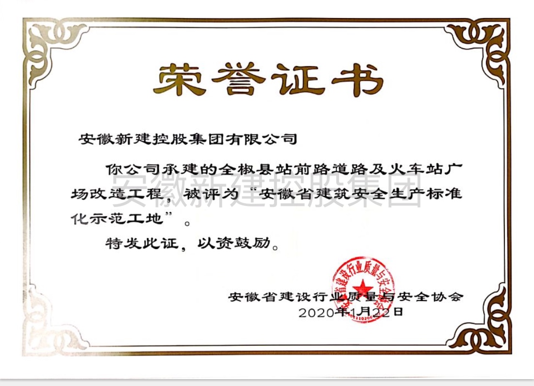 近日,我公司承建的全椒縣站前路道路及火車(chē)站廣場(chǎng)改造工程,通過(guò)安徽省建設(shè)行業(yè)質(zhì)量與安全協(xié)會(huì)的嚴(yán)格考評(píng),被評(píng)為“安徽省建筑安全生產(chǎn)標(biāo)準(zhǔn)化示范工地”稱(chēng)號(hào)。唐海運(yùn)獲“優(yōu)秀項(xiàng)目經(jīng)理”稱(chēng)號(hào)。