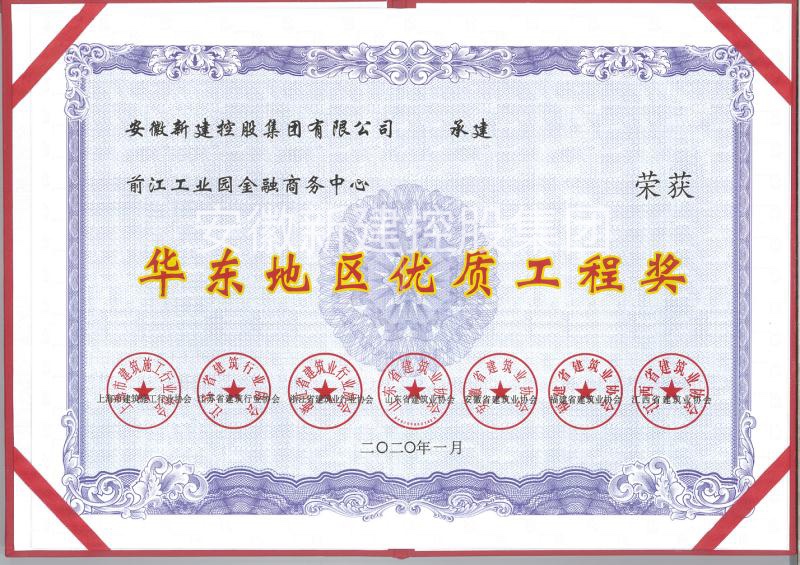 日前,集團(tuán)公司承建的池州市前江工業(yè)園金融商務(wù)中心工程獲得2019年度“華東地區(qū)優(yōu)質(zhì)工程獎”。 “華東地區(qū)優(yōu)質(zhì)工程獎”作為“華東六省一市”建設(shè)工程質(zhì)量最高榮譽(yù)獎,能夠充分體現(xiàn)華東地區(qū)建筑業(yè)企業(yè)質(zhì)量管理的水平。這也是該項目工程既2019年獲得省優(yōu)質(zhì)工程“黃山杯”獎后的又一殊榮。
